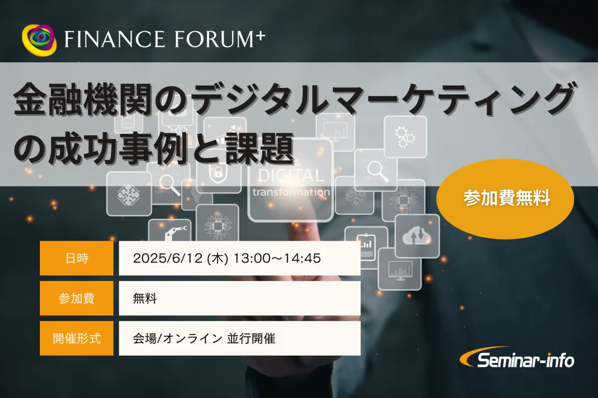 2025年6月12日(木)、東京都千代田区にて「金融機関のデジタルマーケティングの成功事例と課題」というセミナーが開催されます。このセミナーは、最新のデジタル技術の進展に伴い、金融機関が直面するマーケティングの課題や成功事例について深く掘り下げる内容です。参加は無料ですが、金融機関に勤める方のみが対象となっているため、事前の申込が必要です。