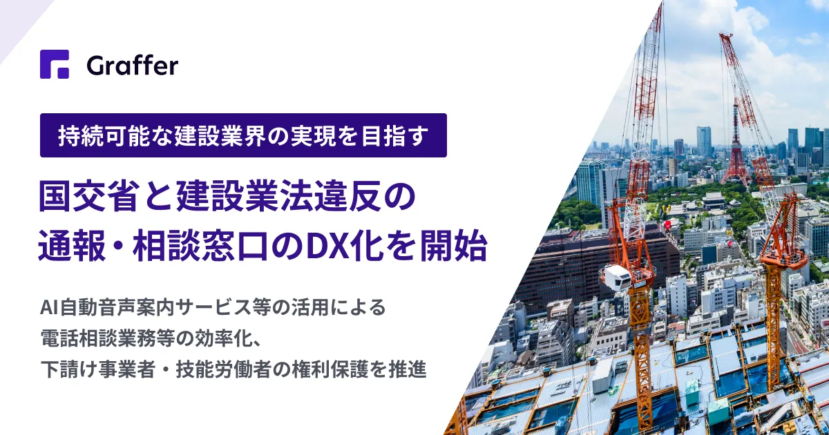 株式会社グラファーは、国土交通省との共創により、建設業法違反に関する通報・相談窓口の業務効率化に向けたプロジェクトを始動しました。このプロジェクトにより、AIやオンライン通報システムを駆使し、通報・相談の対応をよりスムーズに、迅速に行うことを目指しています。