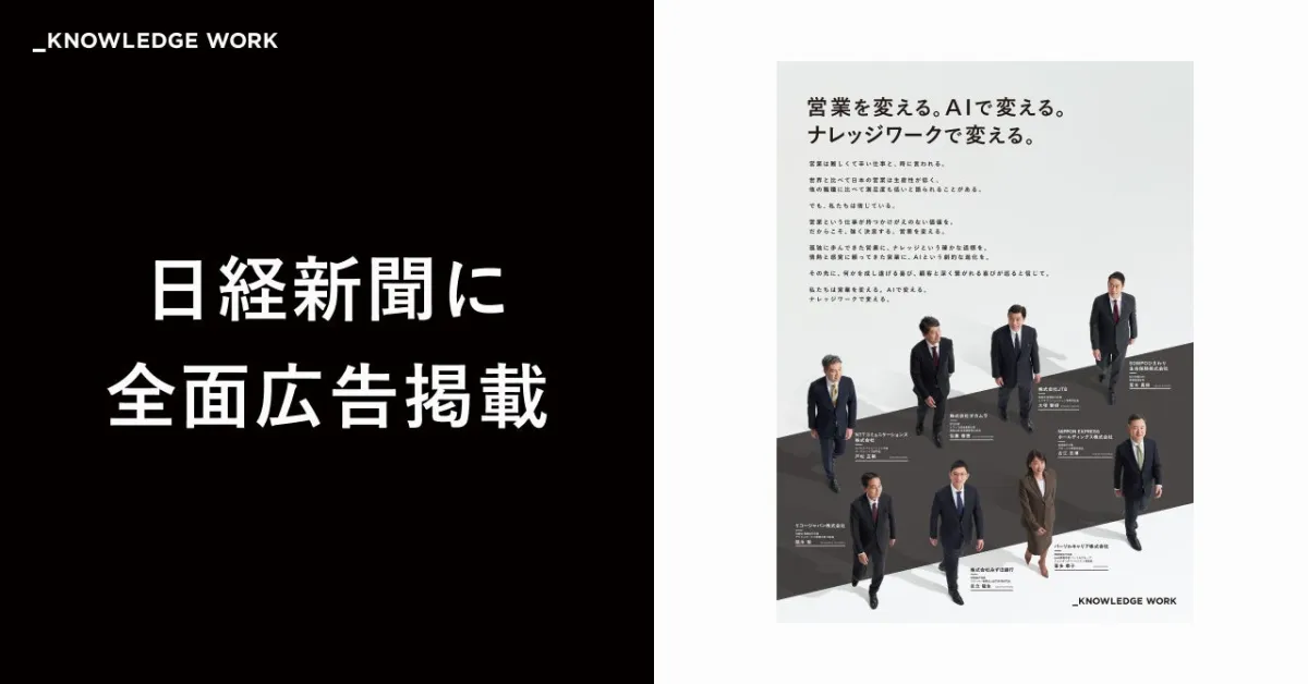 株式会社ナレッジワークは、2025年3月6日、日本経済新聞の朝刊に全面広告を掲載しました。この広告のテーマは「営業を変える。AIで変える。ナレッジワークで変える。」というもので、営業のあり方を革新することへの強い決意が感じられます。