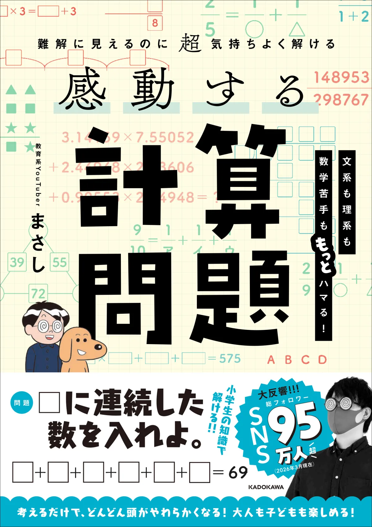 2026年4月21日(火)、株式会社KADOKAWAより『難解に見えるのに超気持ちよく解ける 感動する計算問題』が発売されることが発表されました。著者は、教育系YouTuberとして人気を博しているまさし氏です。この新刊は、前作の『感動する図形問題』に続くもので、再び幅広い年齢層に向けた計算問題集となっています。