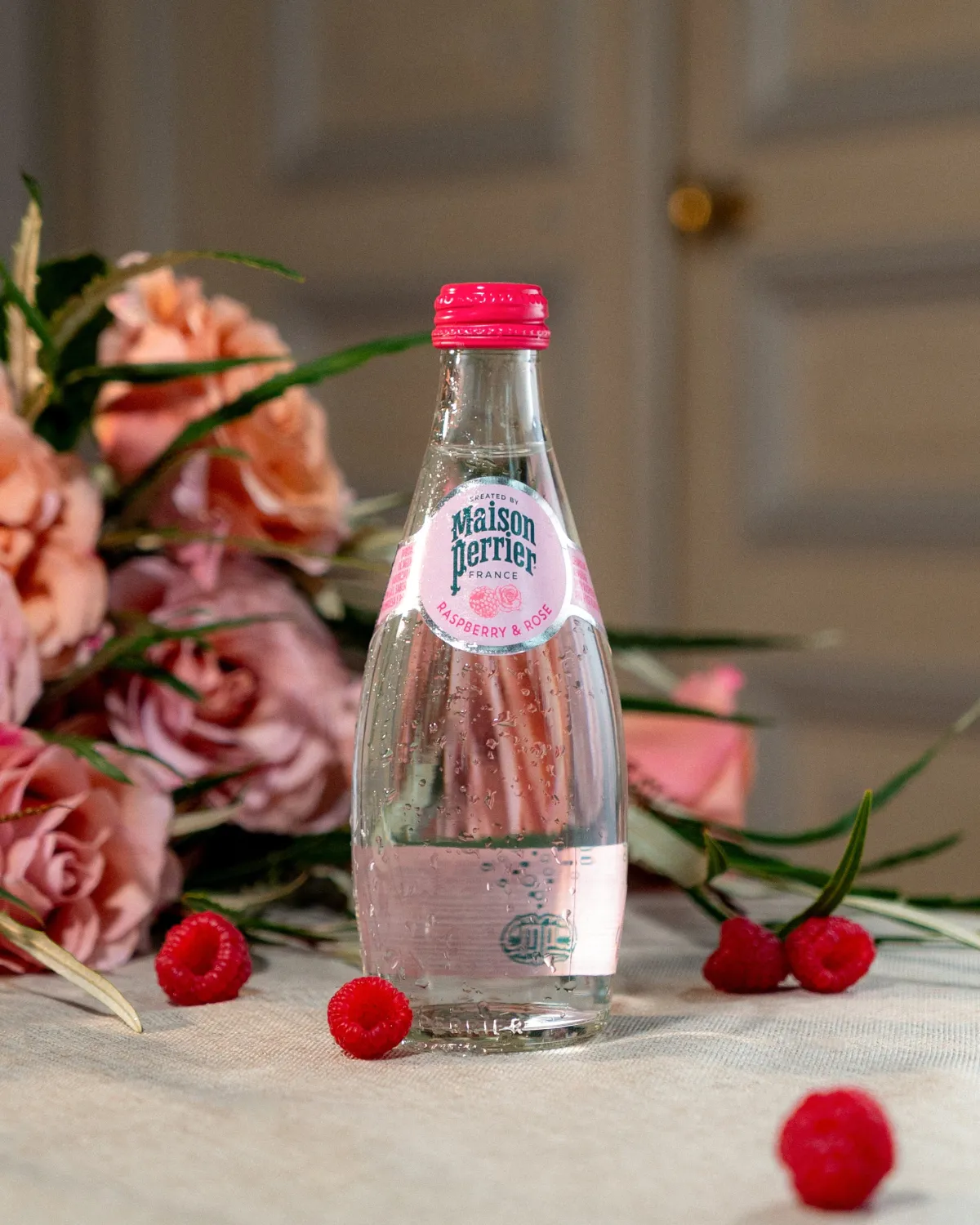 「メゾンペリエコレクション」では、無糖フレーバーのプレミアムスパークリング飲料が2種類、ライムジンジャーとラズベリーローズがリリースされました。どちらも330mlの瓶に充填されており、まさにパーティーや特別な場面を彩るのにぴったりです。
