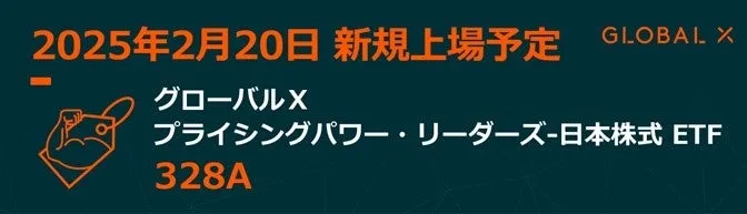 Global X Japan株式会社が、2025年2月20日を予定日に「グローバルX プライシングパワー・リーダーズ-日本株式ETF」【328A】の上場が承認されたことを発表しました。これは、ブルームバーグの「日本株プライシングパワー・セレクト・リーダーズ指数(配当込み)」に連動するETFで、一般消費財や生活必需品セクターの中から、利益率が高く、価格決定力を持つ20銘柄への投資を行うことを目的としています。