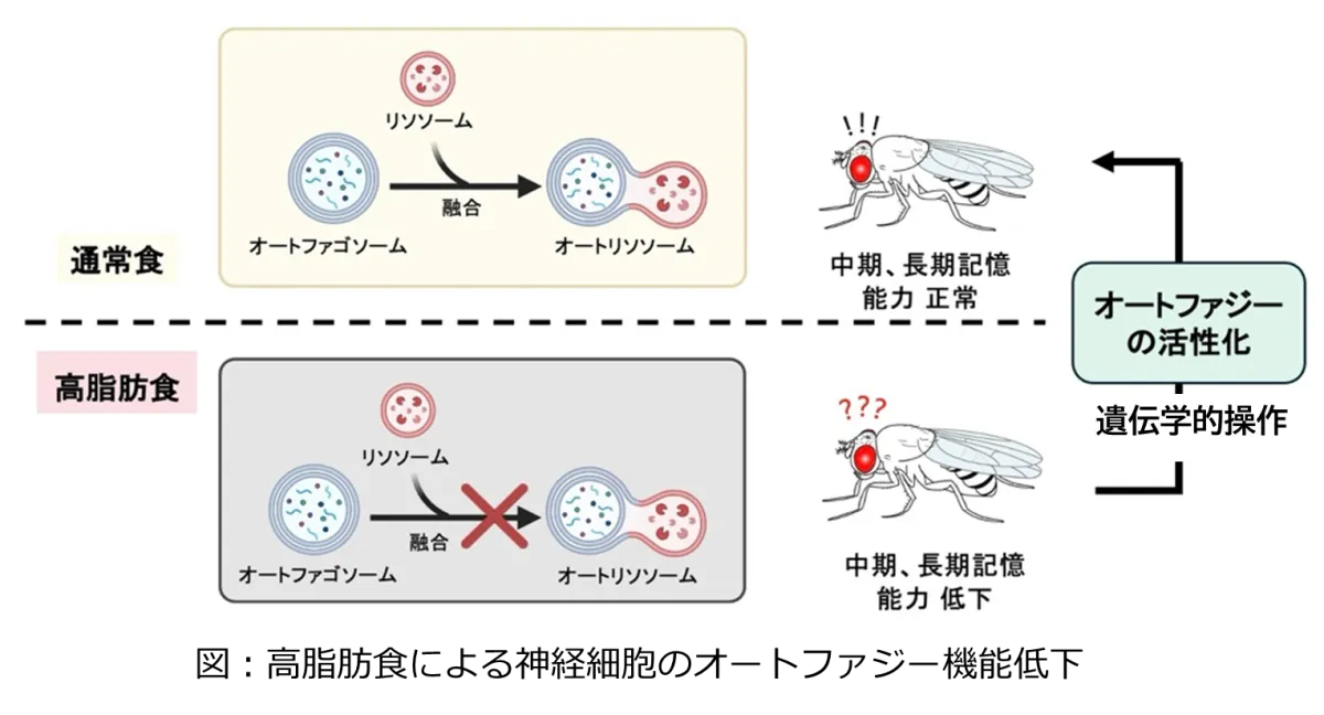 論文タイトル: High-fat diet impairs intermediate-term memory by autophagic-lysosomal dysfunction in Drosophila