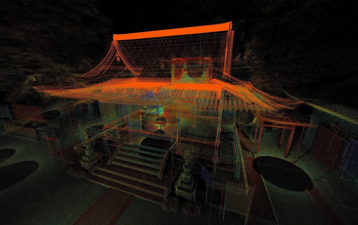 この特許により得られた高精度な3Dデータは、建築物の寸法や傾き、劣化状態をリアルに記録できるため、施工図や墨出し図の作成があらゆる面で確実になります。これが文化財の保存や修復の質を向上させ、さらには伝統建築の理解と技術伝承を支える新たな測量技術としてさまざまな応用が期待されます。