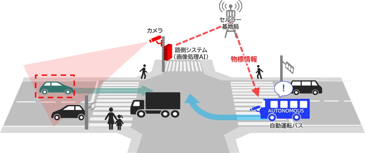 使用される技術は、4Kカメラを用いて歩行者や車両の情報を分析し、その情報を自動運転車両に送信するものです。これにより、車載センサだけでは捉えられない情報を活用し、より安全な走行を目指します。