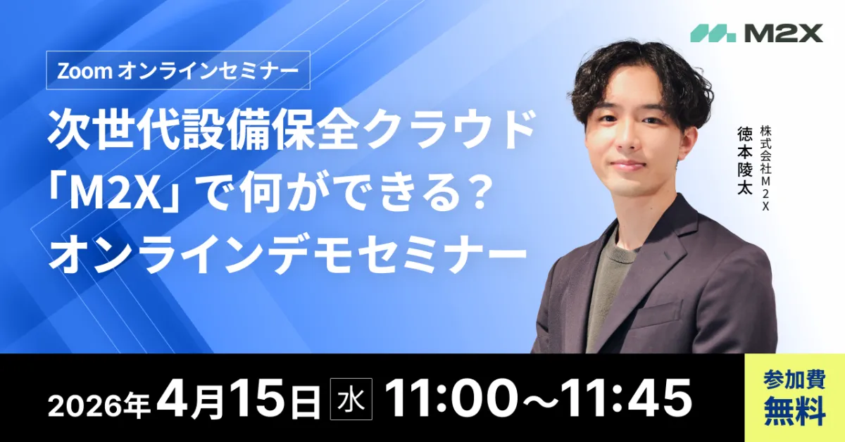 株式会社M2Xは、2026年4月15日(水)11:00から、次世代設備保全クラウド「M2X」に関する無料オンラインデモセミナーを開催します。このセミナーでは、設備保全業務のデジタル化がどのように行えるのか、具体的な操作画面を交えながら詳しく解説されます。特に点検記録のデジタル化やトラブル対応の効率化に関心がある方にとって、非常に有意義な機会となるでしょう。