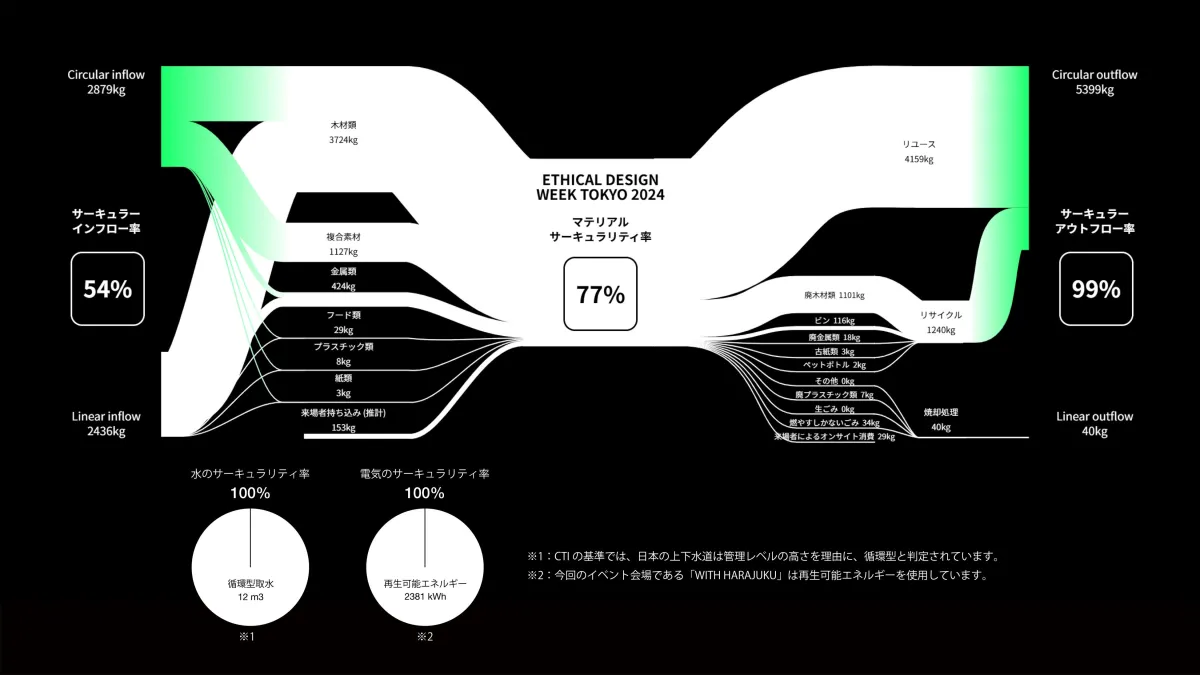 「ETHICAL DESIGN WEEK TOKYO2024」は、単なる展示会ではなく、持続可能性をテーマにした実践的な取り組みの場でした。環境への配慮を踏まえたサーキュラリティ評価の結果から、今後のイベント業界全体にとっても重要な指針が示されたと言えます。