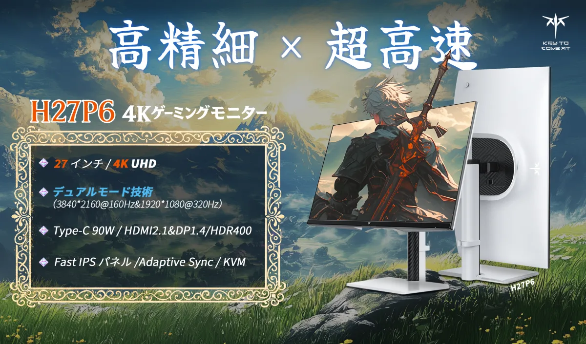 最後にご紹介するのは、4Kモニター「H27P6」。27インチのこのモニターは、あらゆるジャンルのゲームを最高の品質で楽しむことができます。特に「デュアルモード」機能が特徴で、4Kで美麗なグラフィックスを楽しむモードと、FHDで超高速の応答が求められるFPSモードを一瞬で切り替え可能。