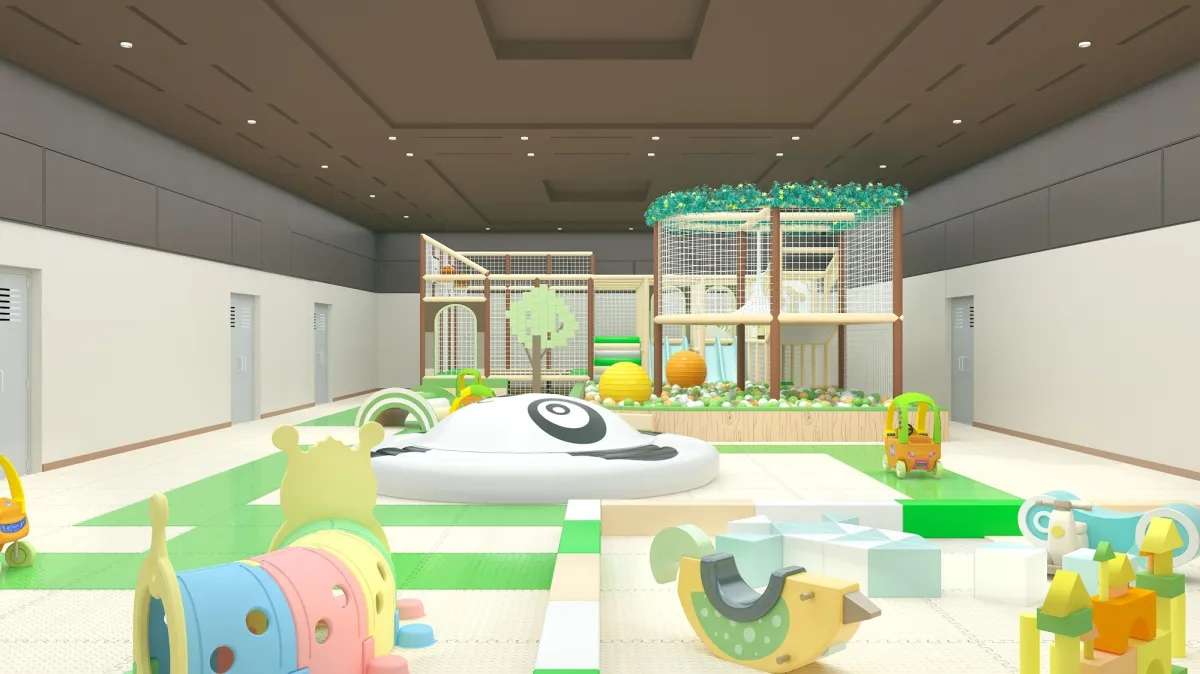 この新たに誕生した「こどもひろば」は、既存の施設を生まれ変わらせたものであり、今日の遊び心を持った子どもたちの為の楽しい場所となっています。旧ランチバイキング会場を改装し、ジャングルジムやトランポリン、ボールプールなど多彩なアスレチック遊具が加わりました。実際、この場所は子どもたちが思いっきり体を動かし楽しむための最高の空間として生まれ変わったのです。
