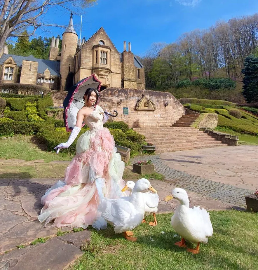 お城の人気者であるアヒルたちが、1日2回お城の正面に登場します。「ドレスを着てアヒルと一緒に記念撮影」は、ここでしか撮れない特別な瞬間を提供してくれます。アヒルたちも皆、素敵な名前が付けられているので、ぜひ興味を持って触れ合ってみてください。