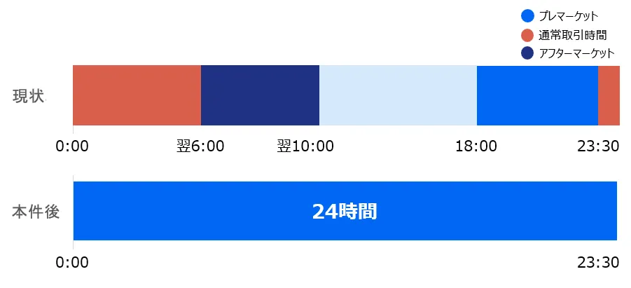新たな24時間取引が実現すれば、投資家は常に市場の動向を見極めることができるようになります。特に株価が急変する局面においても、リスク管理が容易に行えることは大きな利点です。また、取引には一定のリスクを伴うため、所定の手数料や経費が発生することに留意する必要があります。