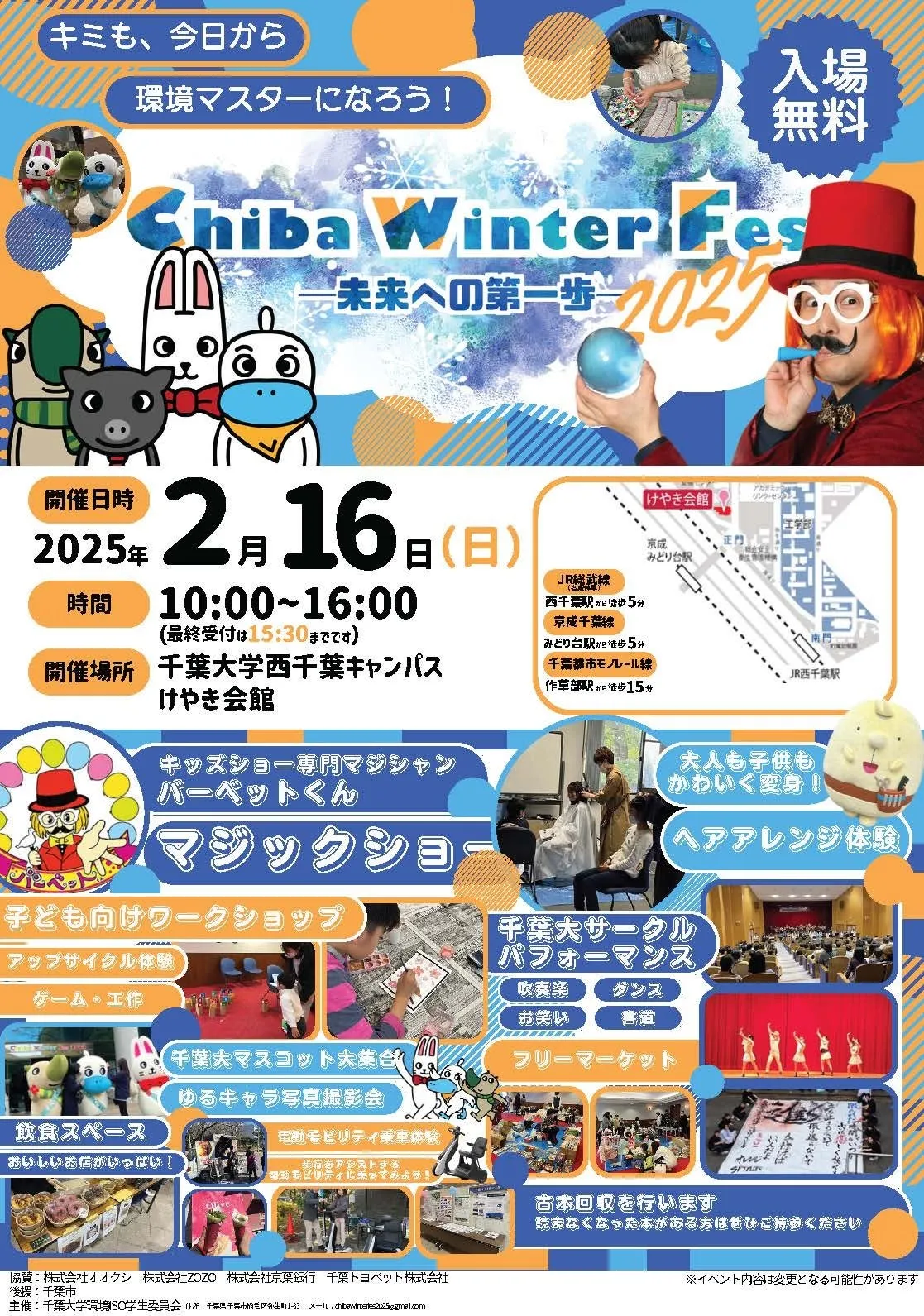 2025年2月16日(日)、千葉大学西千葉キャンパスにて「Chiba Winter Fes 2025 ~未来への第一歩~」が開催されます。このイベントは、千葉大学環境ISO学生委員会が主催し、エコ意識とSDGsの浸透を図ることを目的としています。