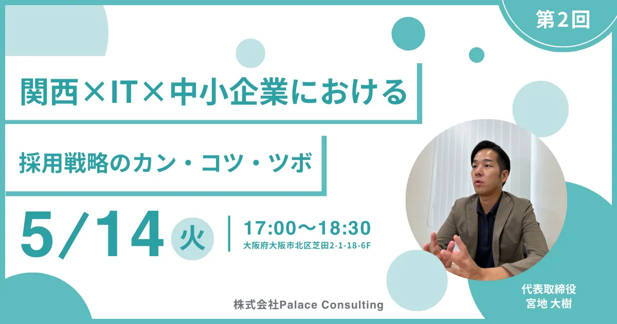 2024年5月14日、関西の中小企業経営者や人事担当者を対象に、大阪市で「新卒・中途採用セミナー」が開催されます。このセミナーは、前回の開催に続いて行われるもので、非常に好評でした。これからの採用活動をより効果的に進められるよう、現場担当者の力を向上させることを目的としています。