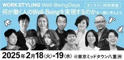 「Well-Being Days」は、ゲスト講師を招いて「何が働く人のWell-Beingを実現するのか」をテーマに考察するイベントです。開催場所は「ワークスタイリング東京ミッドタウン八重洲」で、会場でのオフライン参加に加え、オンライン配信も行われます。