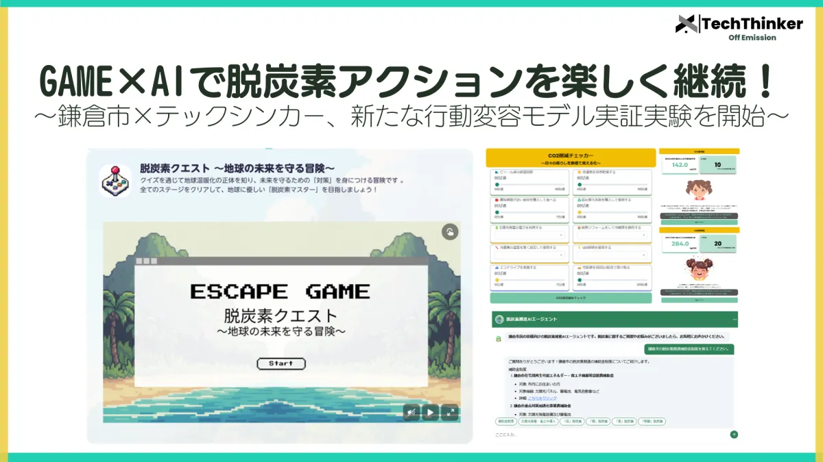 鎌倉市が脱炭素をテーマにした新しい実証実験を開始しました。このプログラムは、株式会社テックシンカーと連携し、ゲームとAIを活用したアプローチで市民の行動変容を促進することを目的としています。市民が自発的に、そして楽しく脱炭素への取り組みを行う仕組みを作り出すことが狙いです。