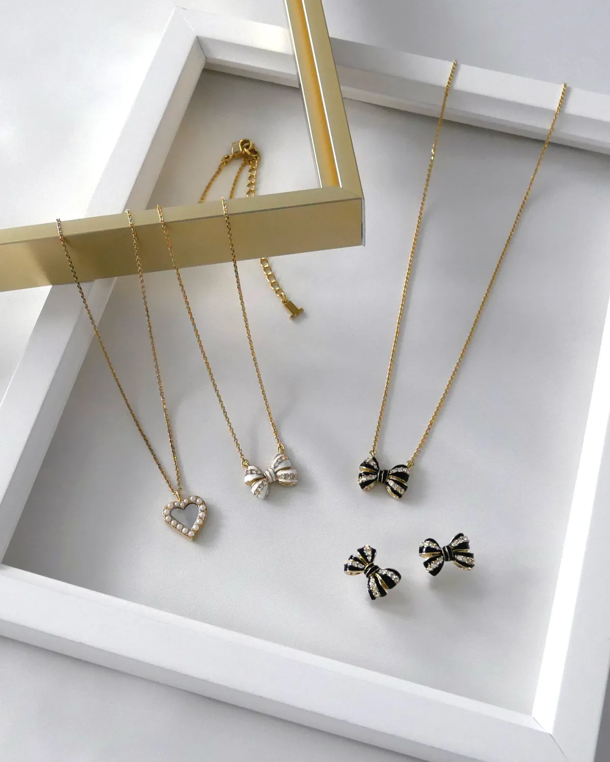 新しいコレクションでは、リボンとハートのモチーフがメイン。これらは「約束」や「絆」を象徴しており、そのデザインは単なる装飾ではなく、意味を持っています。特にリボンモチーフは、エレガントな光沢のあるカラーにカットガラスを組み合わせ、立体感のある小ぶりなデザインが魅力です。これにより、装いが華やかになりつつも上品さを失わない仕上がりとなっています。