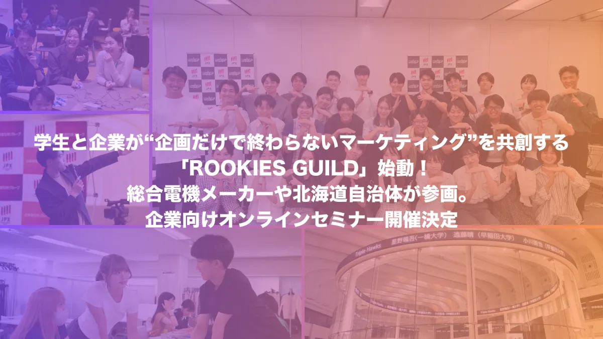 ROOKIES GUILDは、学生と企業が協力し合い、プロジェクトを実施することで「企画提案で終わらないマーケティング」を実現するために立ち上げられました。すでに、代表的な大手総合電機メーカーや北海道の自治体がプロジェクトに参画しており、学生たちと共にマーケティングなどの関連活動を進めています。