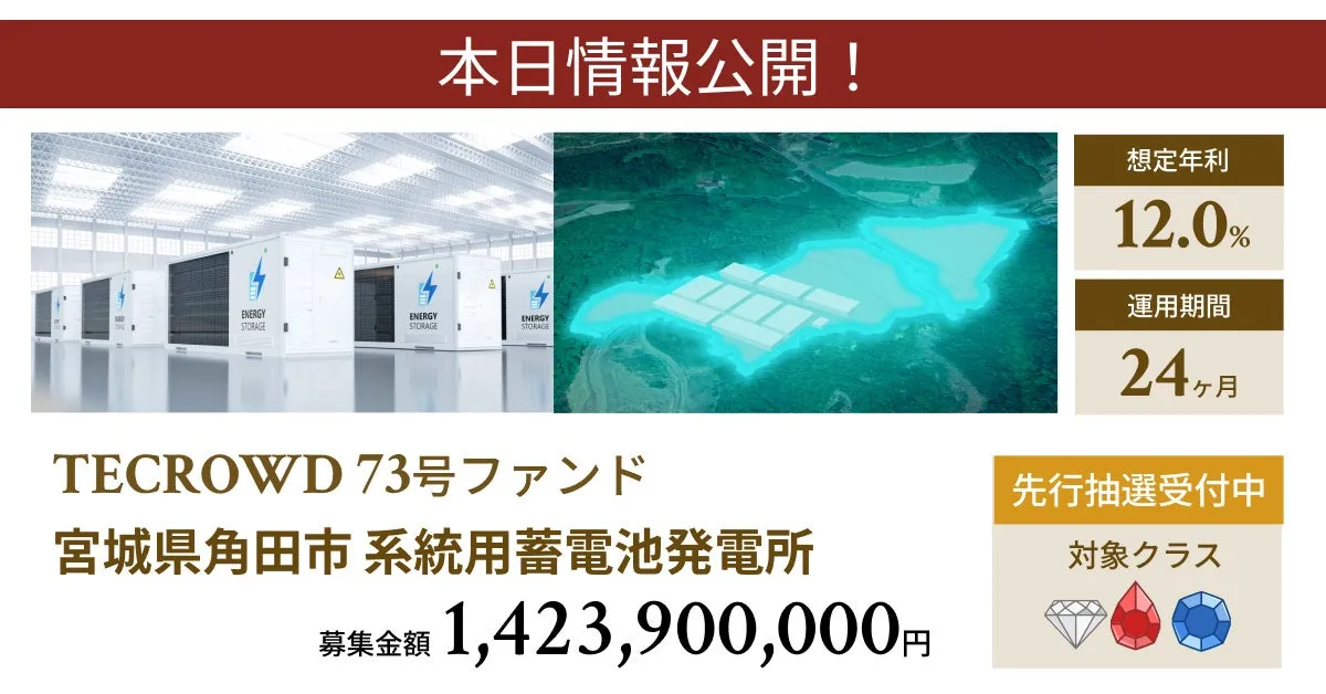 TECRA株式会社が運営する不動産クラウドファンディング「TECROWD」が、2024年12月12日より新たに73号ファンドとして、宮城県角田市の系統用蓄電池発電所開発プロジェクトの情報を公開します。それに続き、12月19日には一般募集が開始され、先行抽選制度も設けられる予定です。この取り組みでは、投資家に新たな収益機会を提供することを目的としています。