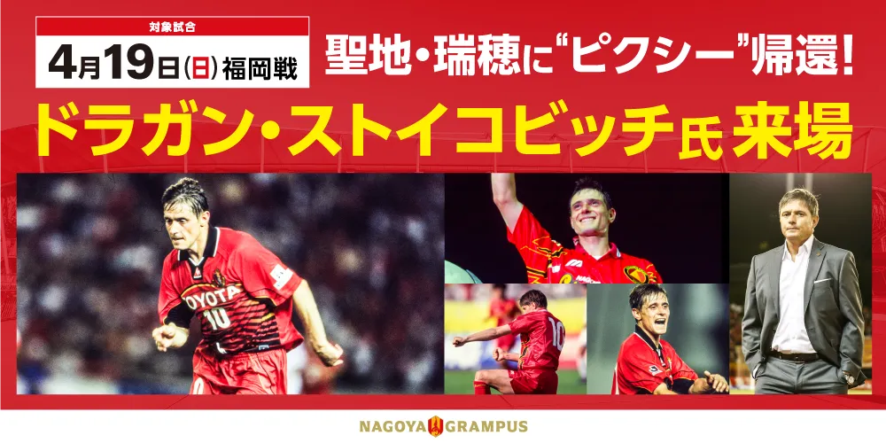 4月19日(日)、名古屋グランパスの聖地であるパロマ瑞穂スタジアムに、かつてのスター選手であり監督でもあるドラガン・ストイコビッチ氏、通称“ピクシー”が約13年ぶりに帰ってきます。この日は新スタジアムのこけら落とし試合とされ、明治安田J1百年構想リーグの地域リーグラウンド第11節、アビスパ福岡との対戦が行われる予定です。