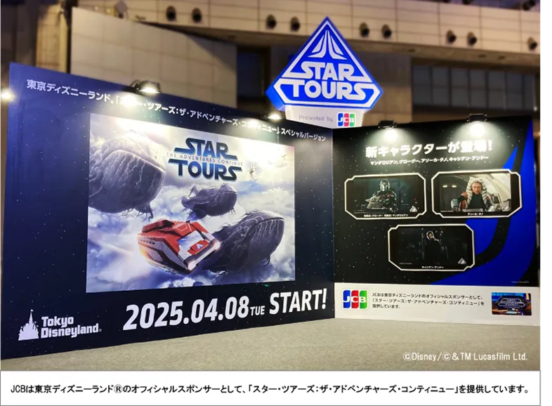 JCBはオフィシャルスポンサーとして、東京ディズニーランド®の人気アトラクション、「スター・ツアーズ:ザ・アドベンチャーズ・コンティニュー」の魅力を存分に楽しめる展示を行います。特設ブースでは、アトラクションの世界観を反映したパネルが設置され、来場者がその美しいデザインやストーリーを体験できるようになります。また、出展を記念したオリジナルグッズの配布キャンペーンも行われます。これらのグッズは、スター・ツアーズをテーマにしたデザインが施されたポストカードです。