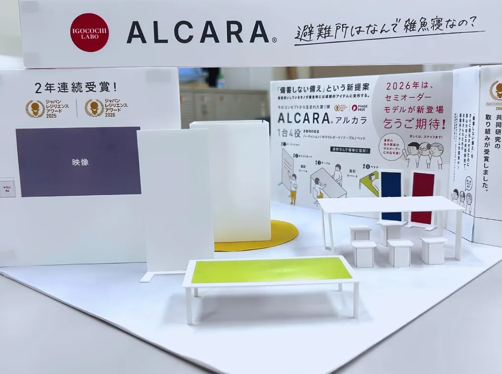 日本は地震や台風などの自然災害が多発する国です。避難所の環境が整っていない場合、発災直後に多くの人々が床に寝起きしなければならない状況は珍しくありません。このような課題を解決するために、アルミファクトリーは「備蓄しない備え」という新しい視点で「ALCARA」を開発しました。