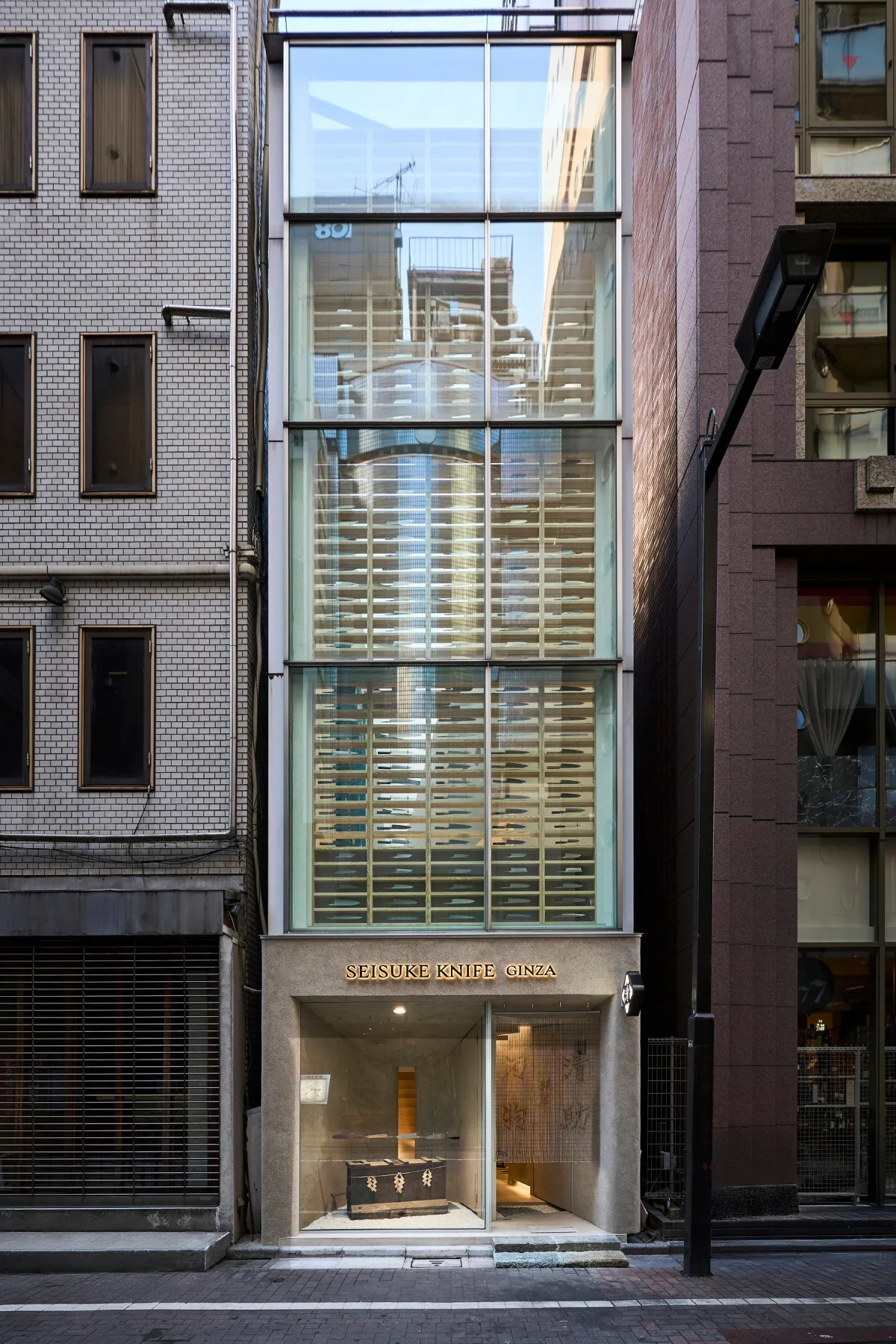 店内の中心には、「The Glass Archives of Forging」という名のディスプレイが設置され、約8メートルの吹き抜け空間に並ぶ包丁は、時間と技の積み重ねを象徴した“時間のアーカイブ”として訪れる人々に感動を与えます。この場所で、美しさや歴史を感じながらじっくりと選ぶ貴重な体験が待っています。