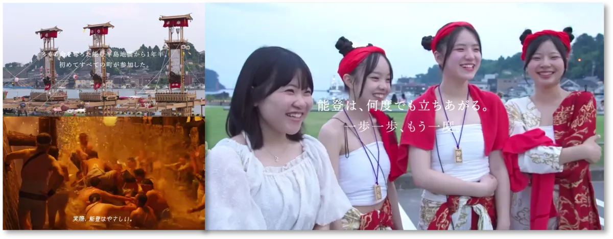 2023年8月27日から公開された特設サイトでは、能登で困難を乗り越えた人々に焦点を当てた動画やインタビュー記事が公開されています。動画は「能登の祭り」と「輪島朝市」を取り上げており、震災の記憶を風化させず、地域の人々がどのように復興に取り組んでいるかを描いています。