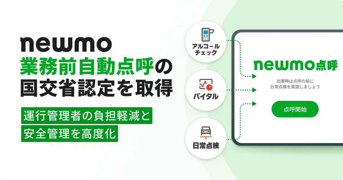 タクシー事業を営むnewmo株式会社が、自社開発した点呼機器「newmo点呼」において、業務前自動点呼の国土交通省認定を取得しました。この新システムの導入により、タクシー業界の業務効率化が大きく前進することが期待されています。特に、運行管理者による対面確認を必要としない自動化は、業務負担を軽減し、安全性を高めるものです。