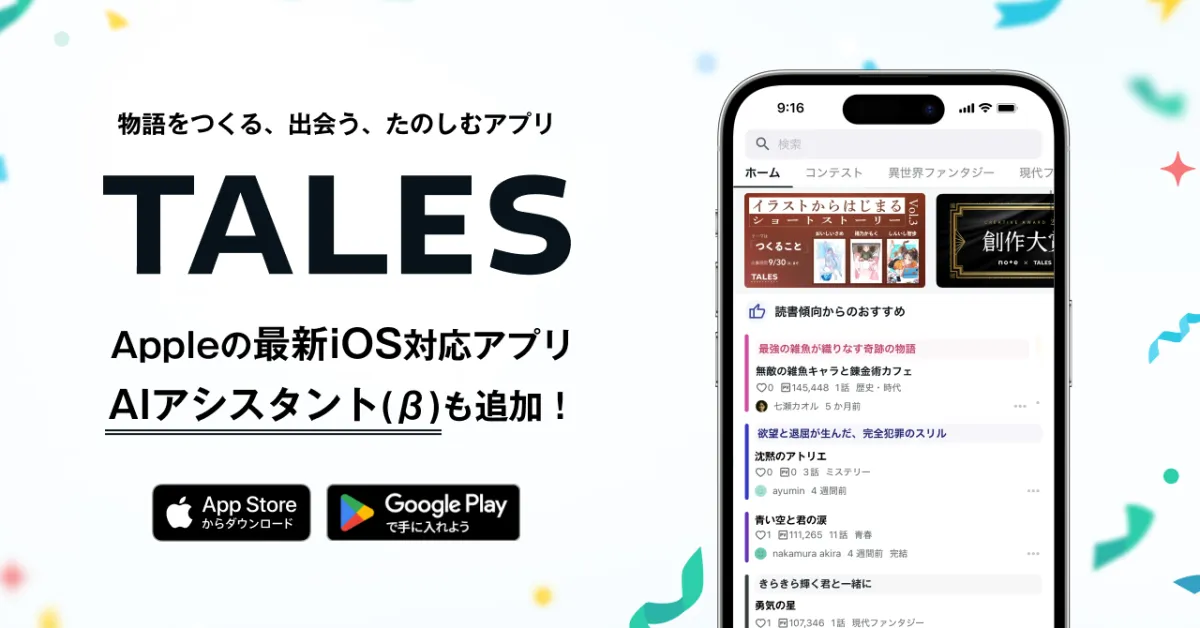 物語投稿サイトTALES(テイルズ)が、9月16日にiOS版とAndroid版の初のモバイルアプリをリリースしました。この新しいアプリは、創作活動や読書をもっと手軽に楽しむことを目的としています。