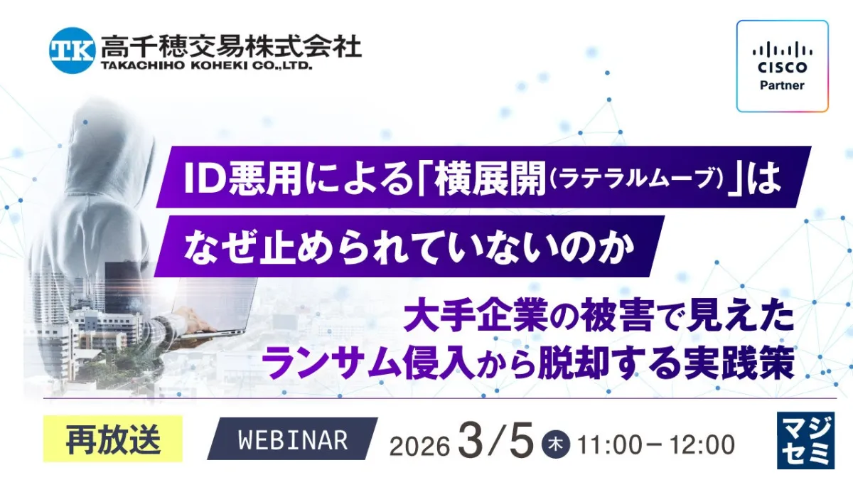 このセミナーは、高千穂交易株式会社とシスコシステムズ合同会社の共催で開催されます。さらに、株式会社オープンソース活用研究所とマジセミ株式会社の協力も得て、実践的な知識を参加者とシェアします。興味のある皆様は、ぜひ参加申し込みをお待ちしております。