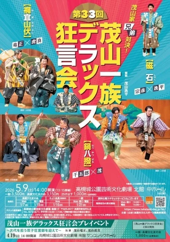 2023年5月9日(土曜日)、高槻市に位置する高槻城公園芸術文化劇場では、狂言界屈指の名門「京都茂山千五郎家」による「第33回茂山一族デラックス狂言会」が開催されます。このイベントの特長は、なんといっても「茂山家兄弟対決!」というテーマ。