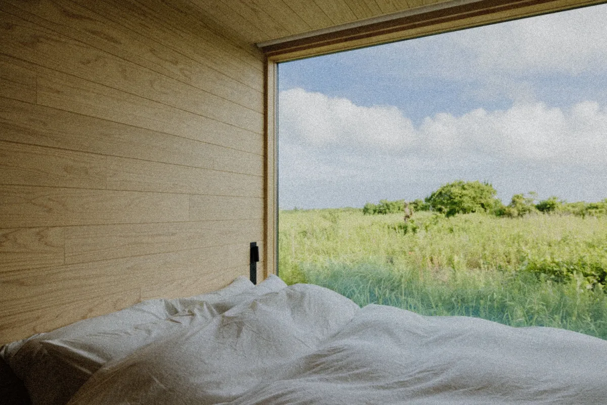 『Sound Haus』の設計思想は、現代人の鈍化した感覚を取り戻すことに重きを置いています。視界からは選ばれた海の景色を排除し、緑の草原と空のみが広がるシンプルな空間を実現。また、居心地の良い静寂を保ちながら、自然音のみが響く環境を整えているため、宿泊者は深いリラックスを体感できます。このように、音環境や視覚情報の制限を通じて、五感が自然と一体となることで、心身の疲れを癒すことが可能です。