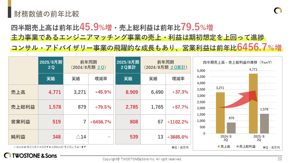 TWOSTONE&Sonsの2025年度第2四半期決算発表