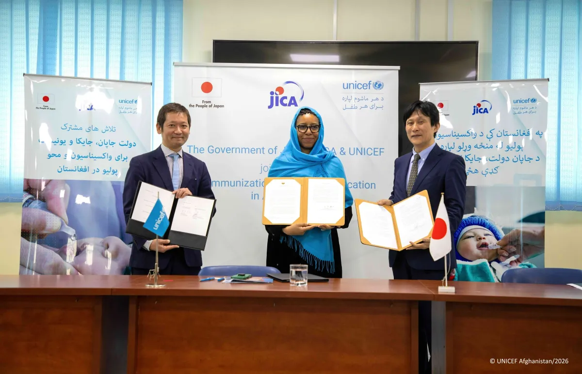 日本は20年以上にわたって、アフガニスタンのUNICEFの主なパートナーとして、予防接種事業に貢献してきました。この支援を通じて、アフガニスタンの子どもたちは予防可能な病気から守られ、成長するチャンスを与えられています。UNICEFは、今後も継続的に支援が続くことに感謝の意を表しています。
