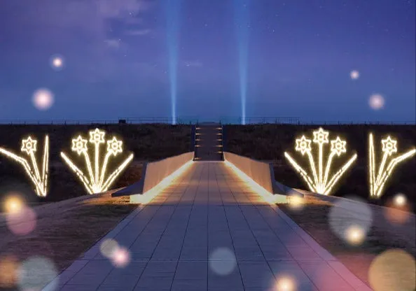今回のイベントは、国営追悼・祈念施設にて初めて行われ、特別に夜間開園されるライトアップも実施されます。暗闇を照らすスイセンの光の地上絵「光ノ碑(ひかりのいしぶみ)」が表現されるほか、地域の催しとの連携も計画されています。来場者は、オブジェやキャンドルなど、参加者の想いが詰まった美しい飾りを楽しむことができます。