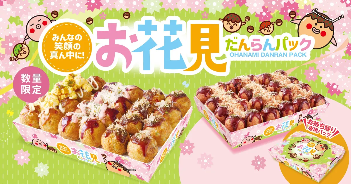 『お花見だんらんパック』は、定番の「ぜったいうまい‼たこ焼(ソース)」が24個入りで、税込2,041円という価格で提供されます。また『お花見贅沢だんらんパック』では、たこ焼に加えて「てりたま」と「チーズ明太子」が楽しめる特別なセットもご用意。こちらは税込2,257円で、お得感があります。それぞれの好みに合わせて自分だけのトッピングを楽しむことも可能です。