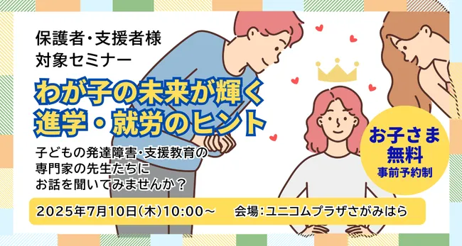 発達特性を持つ子どもたちの未来を輝かせるためのセミナーが2025年7月10日(木)に神奈川県相模原市で開催されます。これは、株式会社EDUWARD Pressが主催するもので、発達特性がある中高生を持つ保護者や支援者に向けた内容です。本セミナーでは、日常的に感じる子どもたちの個性にどう向き合えばいいのか、どのように進路を選ぶべきか、そして相談の場をどう確保するかについての具体的なヒントが提供されます。