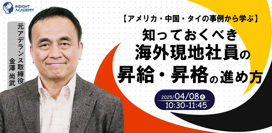 2025年4月8日(火)、インサイトアカデミー株式会社が主催するウェブセミナーが開催されます。タイトルは「知っておくべき海外現地社員の昇給・昇格の進め方」で、アメリカ、中国、タイの事例を学ぶことができます。医療や製造などのグローバルなビジネス環境では、海外での人材育成がますます重要になっています。特に現地社員の昇給や昇格に関しては、企業の業績にも大きく影響するため、理解を深めることが不可欠です。
