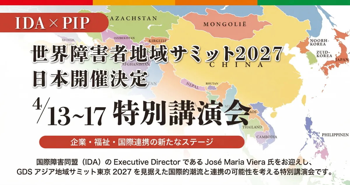 この特別講演会は、「企業・福祉・国際連携の新たなステージ」をテーマに、2025年4月13日から東京、福岡、大阪の3都市で順次行われます。このイベントには、国際障害同盟のエグゼクティブ・ディレクターであるJosé Maria Viera氏が登壇し、2027年に向けての障害者支援の国際的な動向や企業、福祉の役割を議論します。