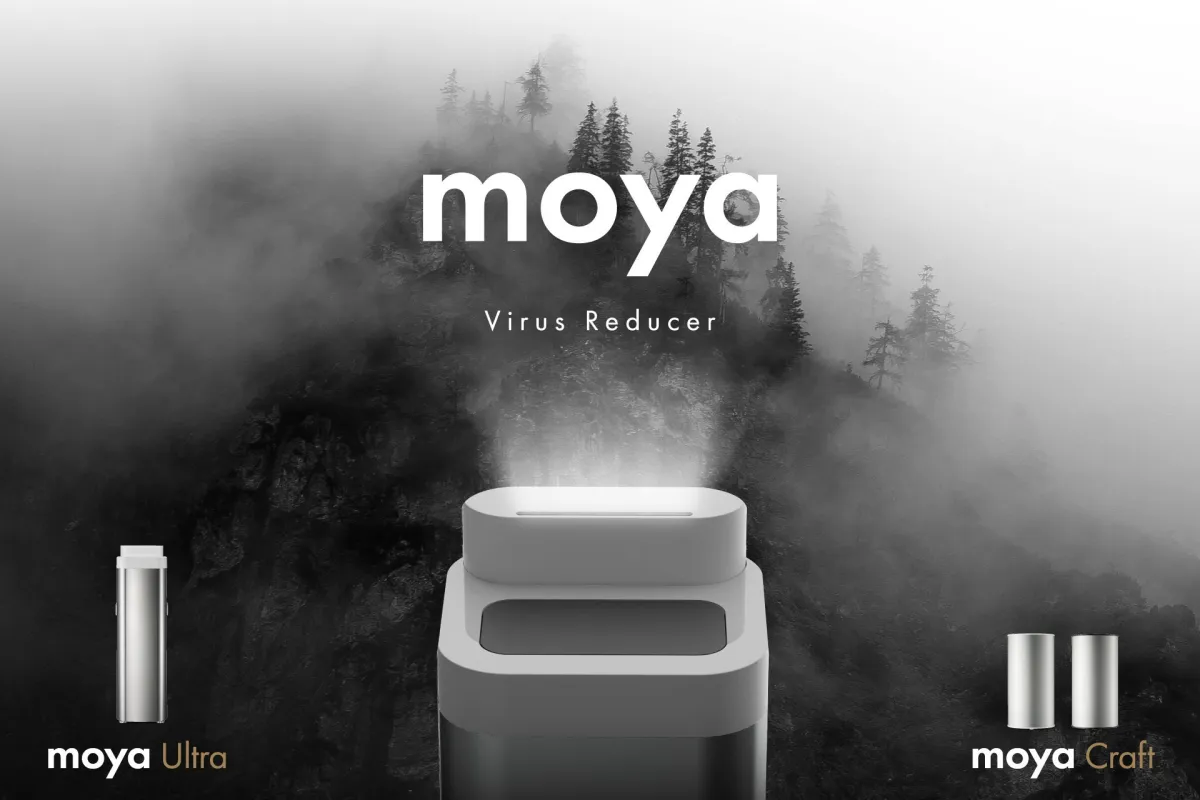 「moya」は、空気を正しい状態に整えることを目的とした加湿機能付きのウイルスリデューサーである。薬剤を用いず水だけで空間に浮遊するウイルスを減少させる技術は、安藤ハザマ技術研究所との共同研究によってその安全性と効果が実証されている。