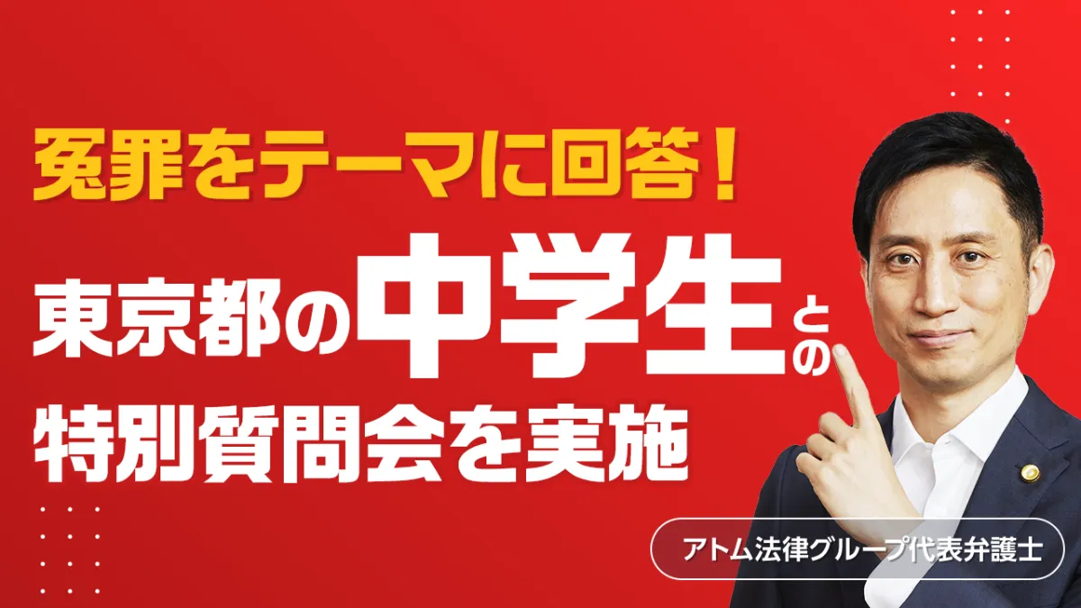 2025年9月26日、アトム法律事務所の横浜支部にて、広尾学園中学校3年生を対象とした特別質問会が開催されました。参加者は生徒たちとその保護者であり、テーマは「冤罪」。この会では、竹原宏征弁護士と岩出佳奈弁護士が質疑応答に対応し、法教育の一環として生徒たちの疑問に答えました。