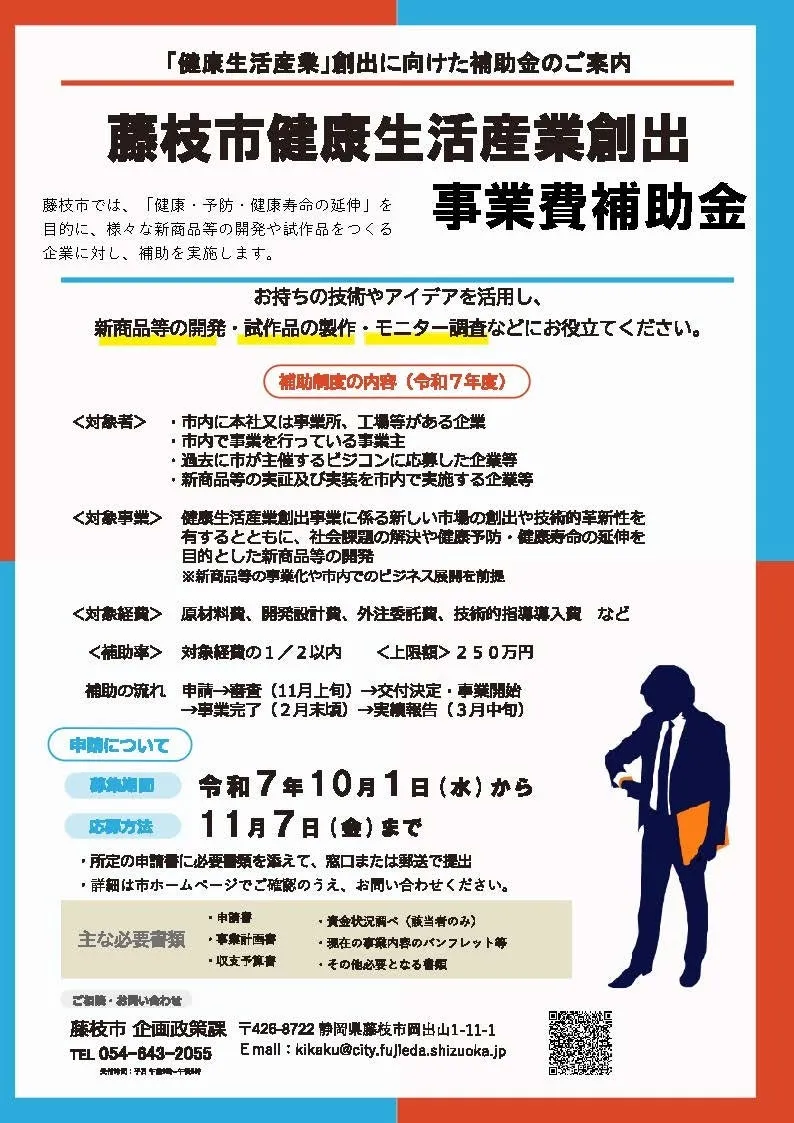 - - 補助金名称:藤枝市健康生活産業創出事業費補助金
