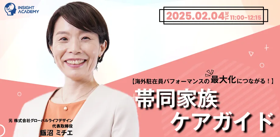 2025年2月4日、インサイトアカデミー株式会社が主催する無料webセミナー、「海外駐在員パフォーマンスの最大化につながる!帯同家族ケアガイド」が開催されます。日本企業が国際競争力を向上させるためには、海外駐在員の効果的な支援が不可欠であり、その中でも帯同家族への配慮が重要な役割を果たしています。
