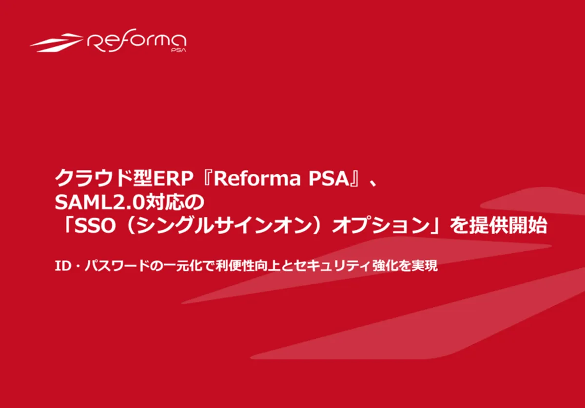 株式会社オロが展開するクラウド型ERP『Reforma PSA』は、新たにシングルサインオン(SSO)オプションを追加しました。この機能により、ユーザーは一度のログインで複数のシステムにアクセスできるようになります。これまで、異なるシステムごとにIDやパスワードを入力する煩わしさがありましたが、この新機能によってユーザーの利便性が大きく向上することが期待されます。また、管理者にとっても、社員の入退社に伴うアカウントの整理や管理が簡素化され、セキュリティの強化にもつながります。
