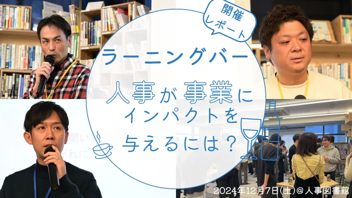 2024年12月7日、株式会社Trustyyleが運営する「人事図書館」にて、第2回ラーニングバーが開催されました。今回のテーマは「人事が事業にインパクトを与えるには」。約60名の参加者が集まり、対話や交流を通じて興味深い情報や知見を共有しました。