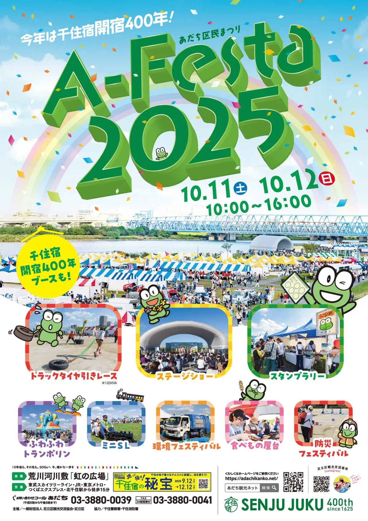 2025年10月11日(土)と12日(日)に、東京都足立区の荒川河川敷「虹の広場」で、盛大に「あだち区民まつり A-Festa 2025」が行われます。今年の目玉は、千住宿開宿400年を祝う特別なイベントやアクティビティです。