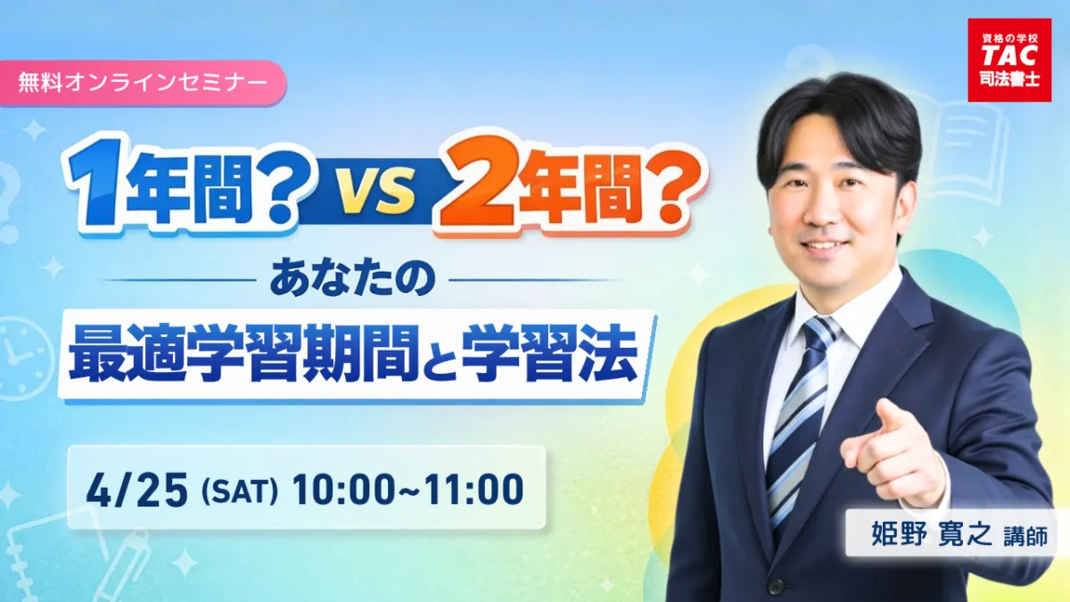 司法書士を目指す受験生にとって、学習計画は非常に重要な要素です。どのような学習期間が最適なのか、1年間で集中的に取り組むべきか、それとも2年間かけてじっくり進めるべきか、選択肢が多いため悩んでしまう方も多いでしょう。そんな中、TAC司法書士講座が開催するオンラインセミナーは、受験勉強を始める方や司法書士試験の受験を検討している方にとって、大変有益な機会となります。