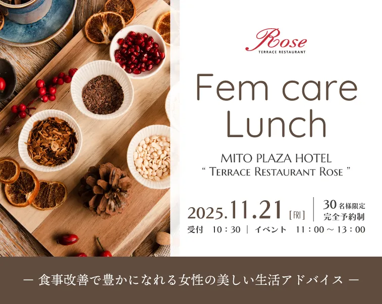 茨城県水戸市に位置する水戸プラザホテルが、女性の心身をケアするためのランチイベント『Fem care Lunch』を2025年11月21日(金)に開催します。このイベントは、前回の好評を受けての第二弾で、現代の女性が抱える健康課題に寄り添う内容が特徴です。