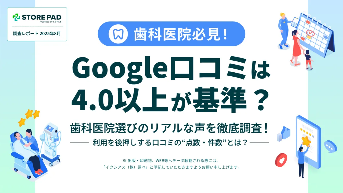 この調査では、過去1年間の歯科医院利用状況やその理由、さらに口コミに対する意識を中心にデータを収集しました。アンケートの結果、歯科医院を選ぶ際の基準としての「4.0点以上」の評価が、多くの利用者にとって重要であることが確認されました。