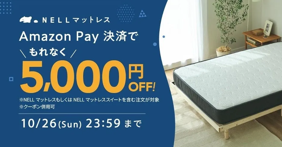 株式会社Morghtが展開する睡眠ブランド「NELL」は、2025年10月6日から10月26日までの期間、公式サイトで「NELL マットレス」をAmazon Payで購入したお客様に5,000円の割引を提供するキャンペーンを開催することを発表しました。この機会を利用して、質の高い睡眠環境を整えましょう。